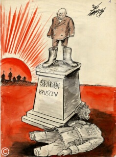 Didascalia: «Incipit vita nuova. lo stalinismo č morto. Nasce il kruscevismo che č fondato su basi completamente nuove»