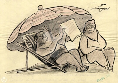 recto: 29.7.1951; verso: N. 30 - 1951, «Lasciatelo in pace! - L' assassinio di re Abdullah è un volgare pretesto per tirare in ballo la solita "crescente minaccia sovietica" e avvelenarmi le vacanze!»