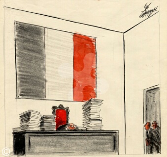 recto: «Candido», 1.9.1957; verso: N. 35 - 1957, «La bandiera nell'ufficio dei ministri. L'avessero fatto per ricordarsi che sono al servizio dell'Italia e non della D.C.»