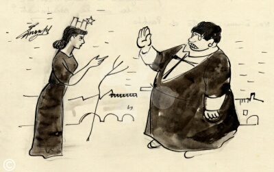 verso: N. 4 - 1954, «Discrezione. Italia posso sapere cosa ci ho guadagnato io dalla crisi che lei mi ha combinato? D.C.: - No: è un segreto di Partito». - 24.1.1954