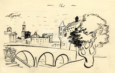 Scheda n°: 485 Autore: Giovannino Guareschi Iscrizioni: recto: pag. 32 Dati tecnici: china su carta, 224x283, b/n, firmato N° ingresso disegni: 390 Note: destinazione "Candido" = non pubblicato Segnatura: 2.2.1 - 454