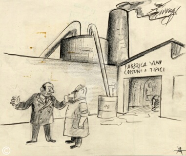 verso: Candido N. 37 - 14.9.1958, «Tempi difficili. - Mentre c'č scarsitą di mele, fichi secchi e carrube, le viti sono stracariche. Se Dio non ci manda una grandinata, va a finire che, quest'anno, dovremo fare il vino con l'uva!...», pag. 11, foto 2