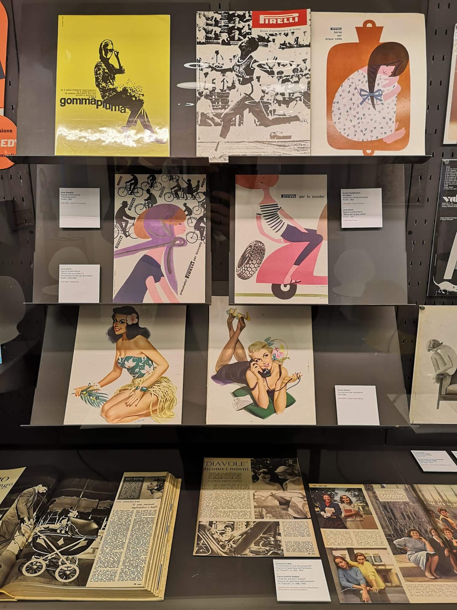 L’esposizione, inizialmente posticipata causa emergenza COVID-19 e anticipata da un percorso virtuale online dallo scorso maggio, fa emergere attraverso una ampia selezione di artefatti grafici (poster, annunci, copertine di libri e periodici, articoli in riviste, cartonati e mockup di espositori pubblicitari) tracce e testimonianze del femminile nel mondo del progetto grafico e della comunicazione visiva nel periodo d’oro del design italiano.