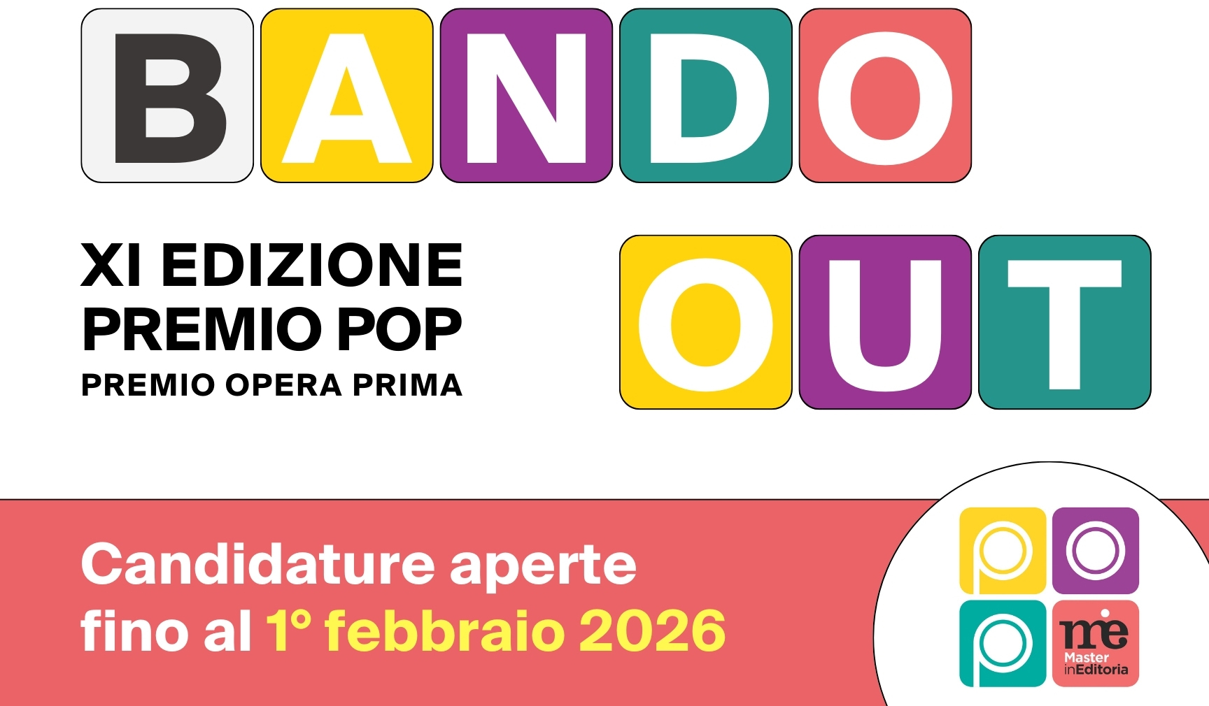 È online il bando dell’undicesima edizione del Premio POP, il Premio Opera Prima promosso dal Master in Editoria di Università degli Studi di Milano, Associazione Italiana Editori e Fondazione Mondadori.