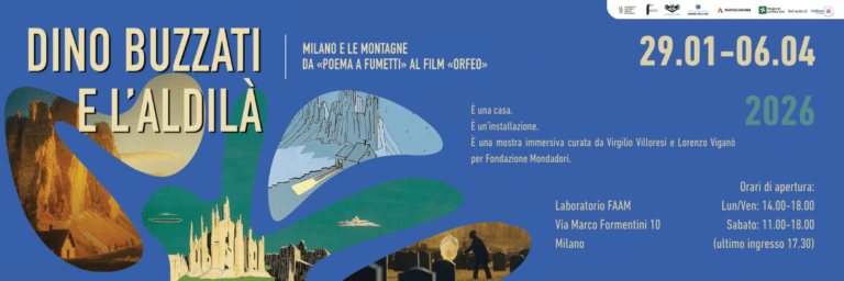 Fino al 6 aprile presso il Laboratorio Fondazione Mondadori è possibile visitare “Dino Buzzati e l’Aldilà. Da Poema a fumetti al film Orfeo“. La mostra è gratuita ed è visitabile dal lunedì al venerdì dalle 14:00 alle 18:00 e il sabato dalle 11:00 alle 18:00.