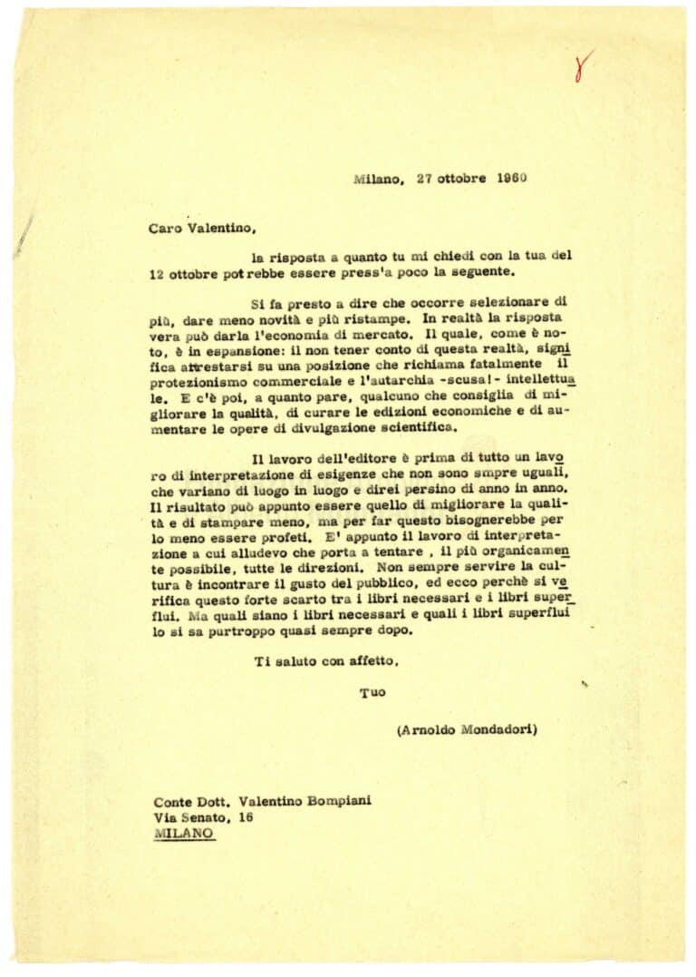 Arnoldo riteneva che il lavoro dell’editore fosse fatto di «attenzione costante per ogni minuto passaggio, di cura per tutti i particolari, senza nulla trascurare di quanto poteva influire sul buon esito d’una operazione» (Decleva, p. 508).