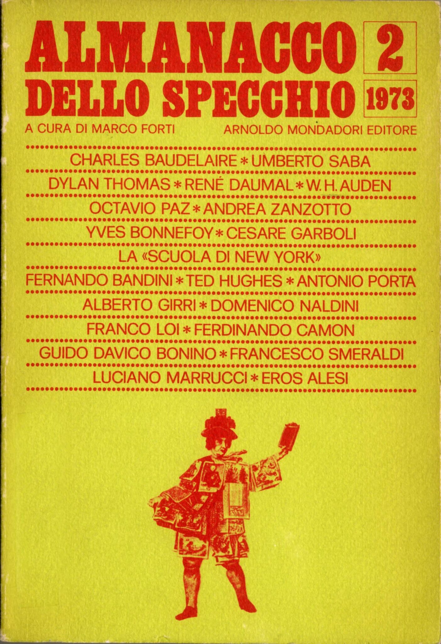 Ma se i poeti della Neoavanguardia trovano accoglienza presso Feltrinelli – e poi da Einaudi, con la nuova edizione della celebre antologia nel 1965 –, lo «Specchio» continua a essere un vivace laboratorio poetico e si impone nel panorama editoriale italiano fino a diventare, di fatto, un’istituzione. Lo è già quando, tra il 1967 e il 1968, Forti – ormai affermato critico, che ha già pienamente espresso la sua linea interpretativa nei numerosi saggi pubblicati in rivista e poi raccolti nel volume Le proposte della poesia (Mursia 1963) – assume la direzione del settore poesia e lavora insieme a Vittorio Sereni (direttore letterario dal 1958) come responsabile della collana. Alle cure di Forti viene affidato anche l’Almanacco dello Specchio, che s’inaugura nel 1972 con il primo numero curato insieme a Giuseppe Pontiggia.