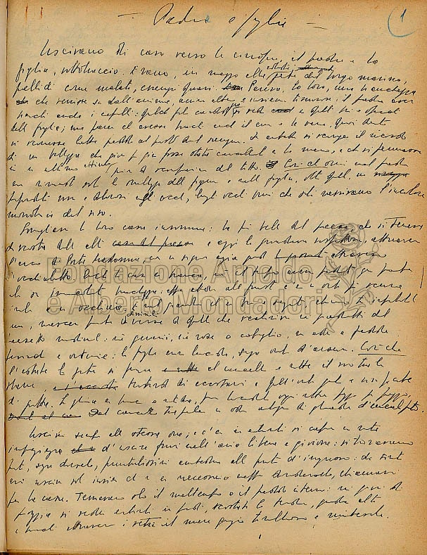 Questo racconto manoscritto è un testo mai raccolto in volume conservato nel Fondo Arnoldo Mondadori, tra le carte editoriali e le lettere intercorse tra la scrittrice e l’editore. Il racconto è dedicato ad Arnoldo Mondadori che rispose all’autrice con il telegramma di ringraziamento qui allegato.