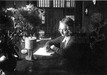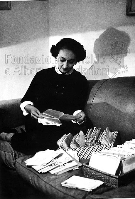 Alba de Céspedes nella sua casa romana mentre legge la posta della rubrica Dalla parte di lei (titolo mutuato da uno dei suoi libri più noti).