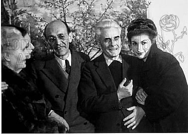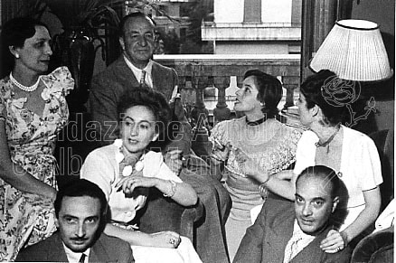 “Da sinistra Sibilla Aleramo, Paola Masino, Mario Berlinguer, Massimo Bontempelli, Stefania Mastrocinque. Cocktail di Guido Alberti per Mercurio”