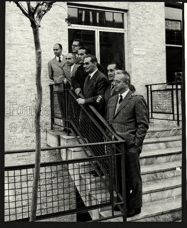 I direttori dei periodici Mondadori. Si riconoscono tra gli altri Tedeschi, Mario Gentilini e Enzo Biagi.