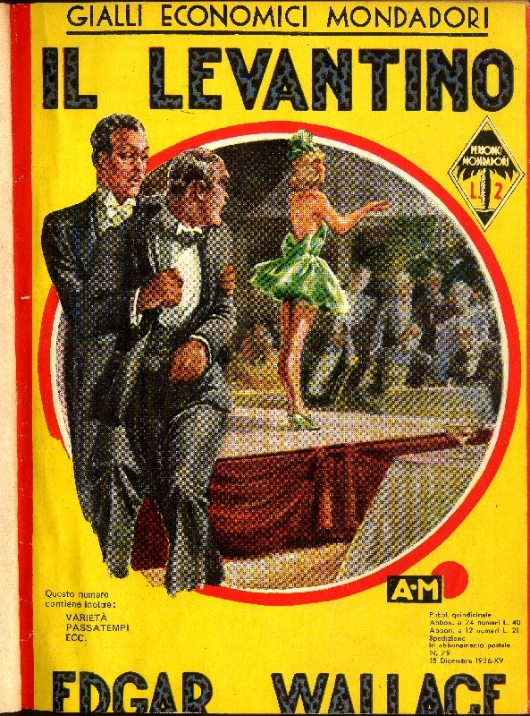Edgar Wallace, Il levantino, 1936 (“Gialli economici Mondadori”). Wallace è tra gli autori più presenti negli anni trenta.