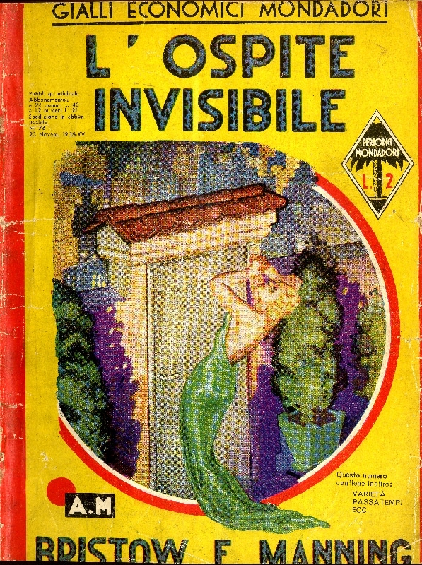 Bristow e Manning, L’ospite invisibile, 1936 (“Gialli economici Mondadori”). Lia Volpatti nel suo Il segreto di Agatha (cfr. segnalazione su questo sito) ha recentemente ricordato la vicenda della strana somiglianza tra quest’opera e Ten little niggers della Christie. Il plagio non sfuggì ai contemporanei, come dimostra il parere degli anni trenta redatto da Enrico Piceni e qui riprodotto.