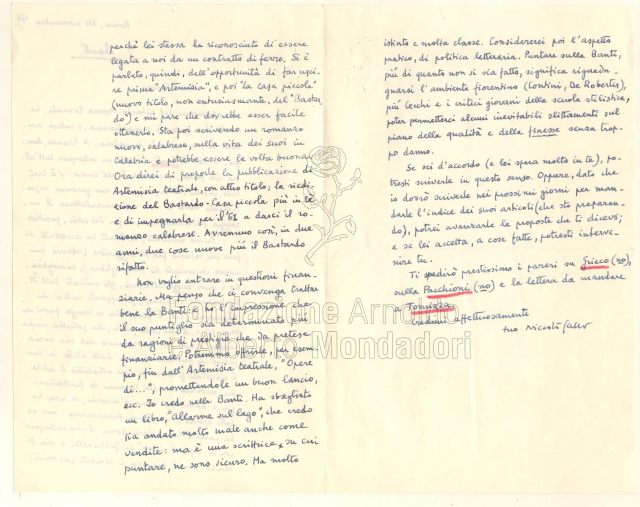 La relazione con la casa editrice è in questo periodo complicata: rispetto alla volontà di ristampare l’edizione corretta di Il bastardo come vorrebbe la Banti, la Direzione Letteraria preferisce puntare sulla versione teatrale di Artemisia. L’autrice ancora una volta minaccia di cambiare editore, ma saranno le premure di Niccolò Gallo a evitare l’allontanamento. Gallo crede in Anna Banti anche in virtù del prestigio che la scrittrice può riversare sulla Casa: «puntare sulla Banti, più di quanto non si sia fatto, significa riguadagnarsi l’ambiente fiorentino (Contini, De Robertis), più Cecchi e i critici giovani della scuola stilistica, poter permetterci alcuni inevitabili slittamenti sul piano della qualità e della finesse senza troppo danno».