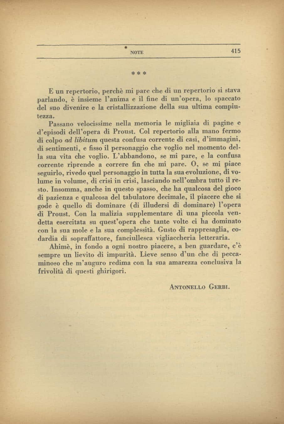 Antonello Gerbi, Ghirigori sul repertorio di Proust - Fondazione Mondadori