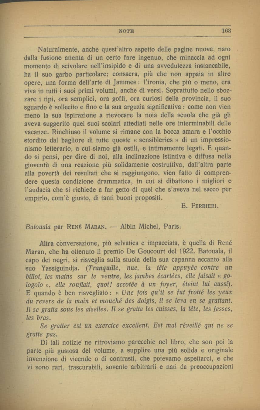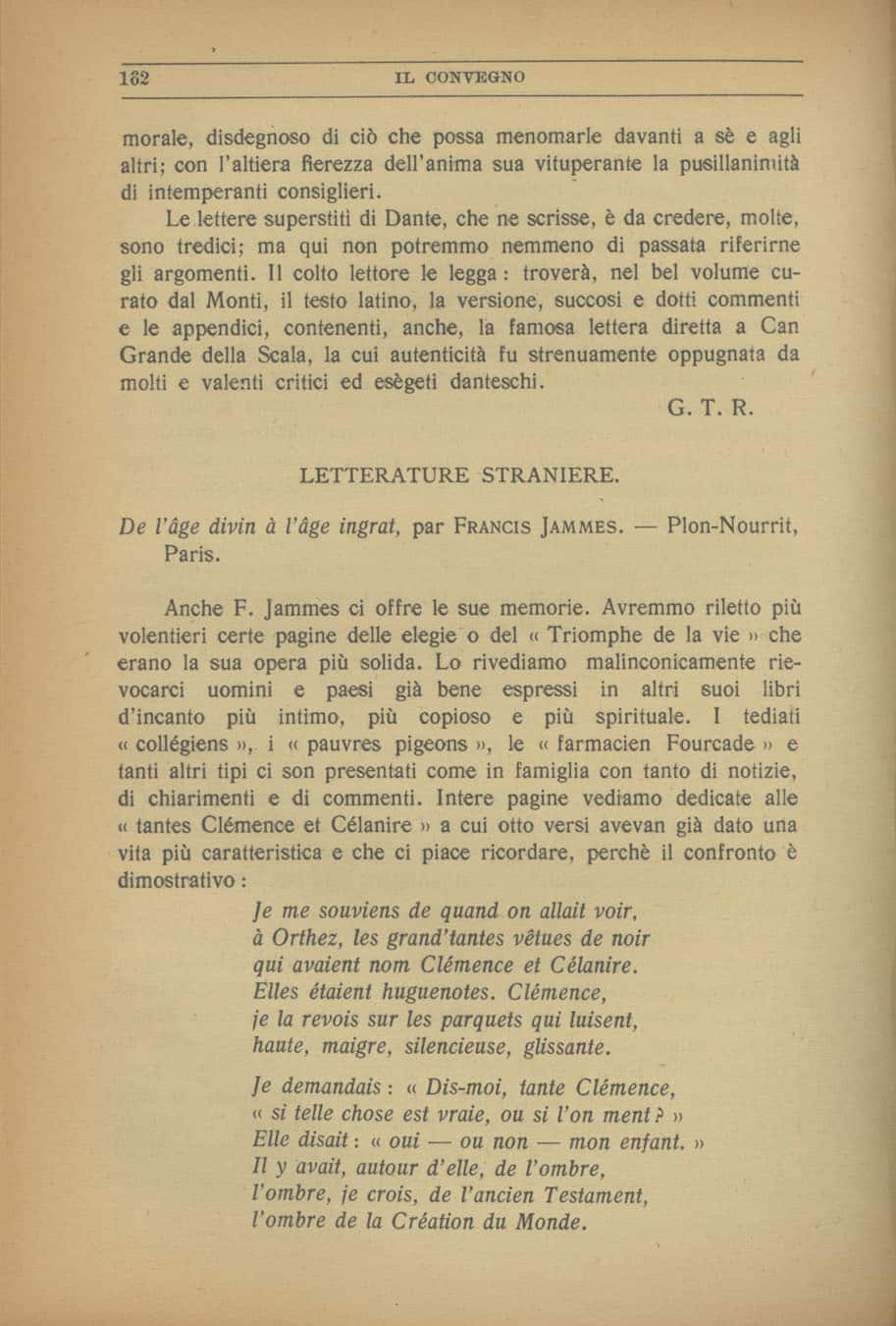 Enzo Ferrieri, De âge divin à l’âge ingrat par Francis Jammes, «Il Convegno», III (1922), n. 3-4, pp. 162-163