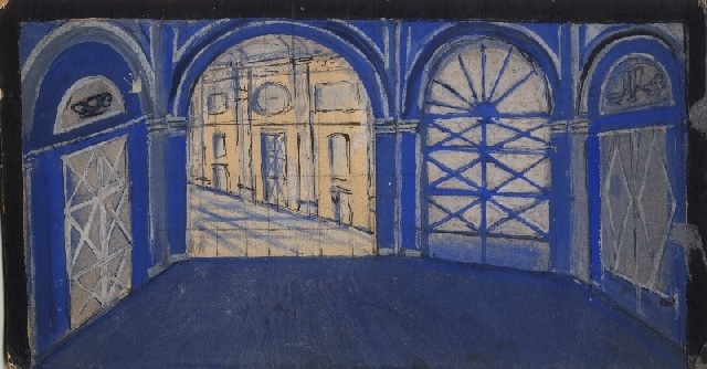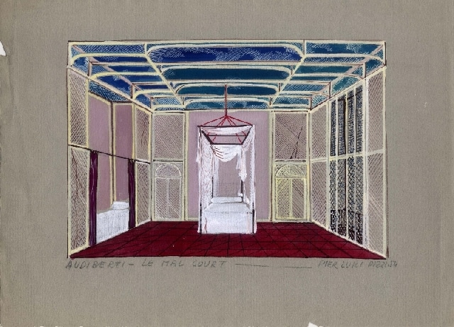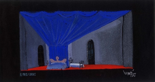 Bozzetto di scena di Pier Luigi Pizzi per Il male corre di Jacques Audiberti, 1954