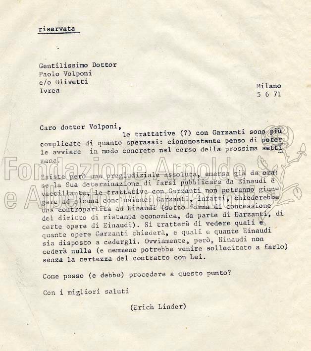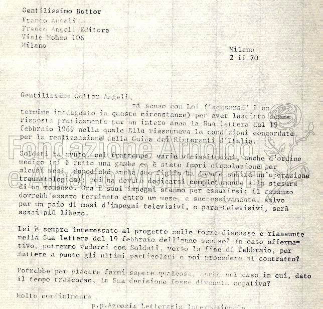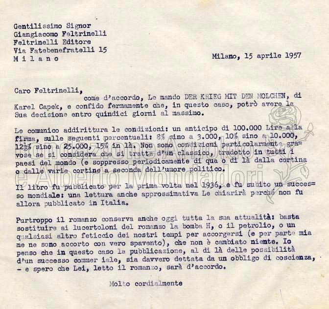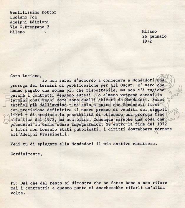 Lettera a Arnoldo Mondadori Editore
