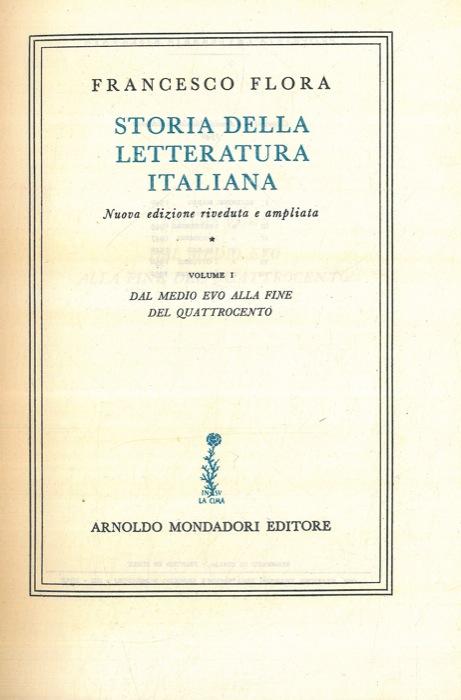 Frontespizio del primo volume della Storia della letteratura italiana di Francesco Flora, Mondadori, Milano 1947.