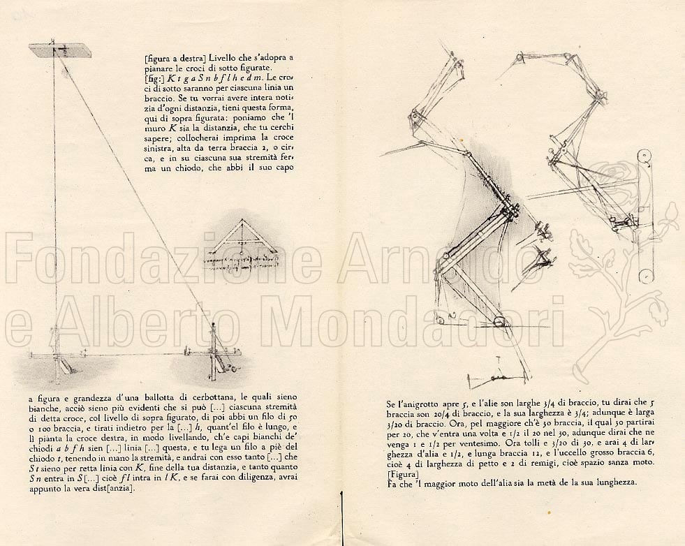 Un intero fascicolo del Fondo Flora contiene la corrispondenza riguardante i lavori intorno all’opera omnia di Leonardo da Vinci, che, curata dallo stesso Flora, avrebbe dovuto entrare a far parte dei “Classici italiani”. Lo testimoniano le bozze di stampa incluse nel carteggio, che hanno tutte le caratteristiche delle pagine dei volumi dei “Classici”: carta India finissima color avorio impressa con caratteri Pastonchi. Il volume, tuttavia, non fu mai realizzato; il Leonardo curato da Flora uscì nella B.M.M. nel 1952.