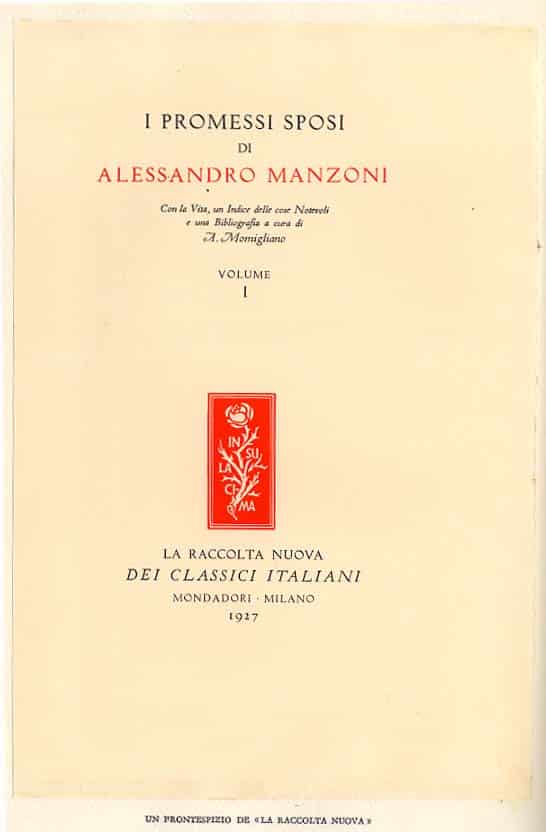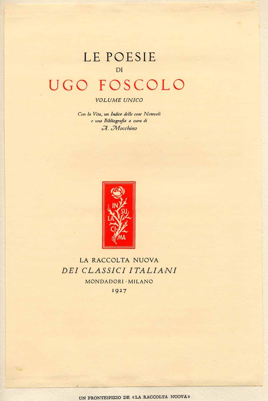 I frontespizî dei primi due volumi, Le poesie di Ugo Foscolo curate da Alberto Mocchino e I Promessi Sposi curati da Attilio Momigliano, erano già pronti e vennero riprodotti nel prospetto del ’27.