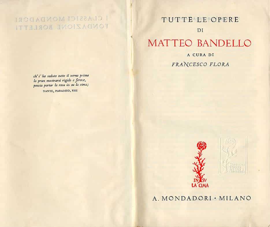 Il primo volume pubblicato nei “Classici italiani” diretti da Francesco Flora fu il Bandello, curato dallo stesso direttore di collana, conservato nella biblioteca storica Arnoldo Mondadori Editore presso la Fondazione Mondadori.