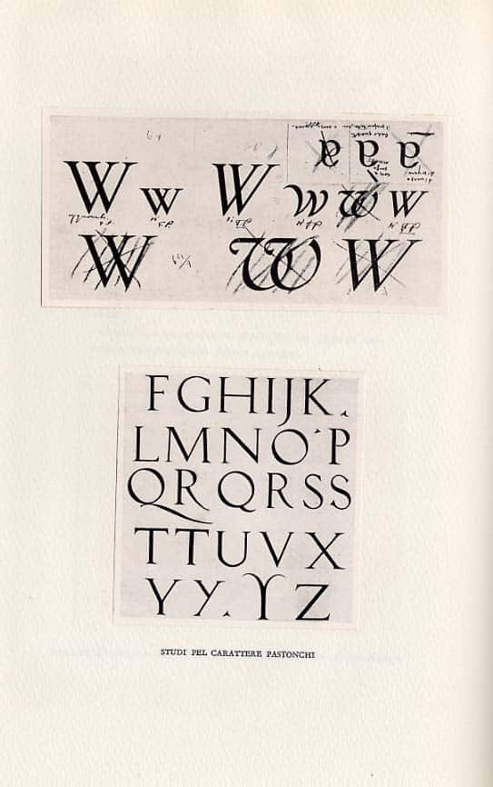 Francesco Pastonchi, poeta ligure cui fu affidata la direzione della “Raccolta Nuova dei Classici italiani”, si adoperò perchè fosse prodotto per la sua collana un nuovo carattere e, nonostante i continui tentativi di Arnoldo Mondadori di optare per soluzioni già pronte e quindi più economiche, alla fine il nuovo carattere venne approntato. Tuttavia la “Raccolta Nuova” non arrivò a pubblicare nessun volume, ma il carattere Pastonchi venne conservato e usato per i volumi dei “Classici italiani” diretti da Francesco Flora.