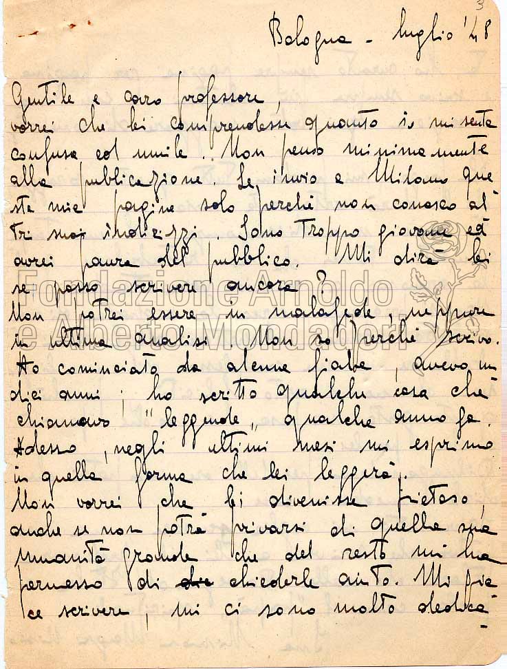 Lettera di Ninon Magri Nisio a Francesco Flora, luglio 1948.