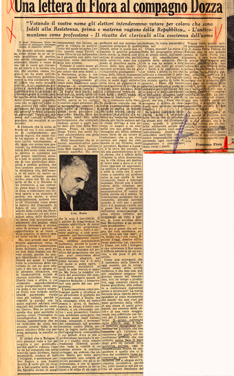 Letterato “impegnato”, Flora interveniva anche nel dibattito politico e culturale dalle pagine de “L’Unità”. 22 maggio 1956.
