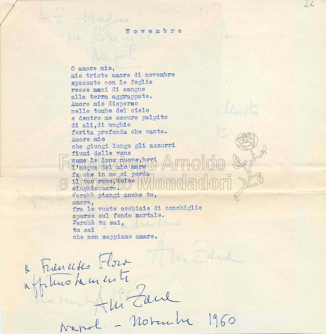Un fascicolo del Fondo Flora è riservato al carteggio tra il letterato e Ain Zara Magno, poetessa alla quale egli era legato da un’affettuosa amicizia.