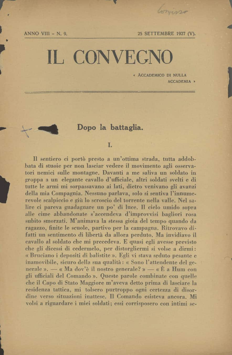 Strumenti per la ricerca Il Convegno 1920-1940 Giovanni Comisso, Dopo la … Giovanni Comisso, Dopo la battaglia Condividi su Giovanni Comisso, Dopo la battaglia, «Il Convegno», VIII (1927), n. 9, pp. 491-516