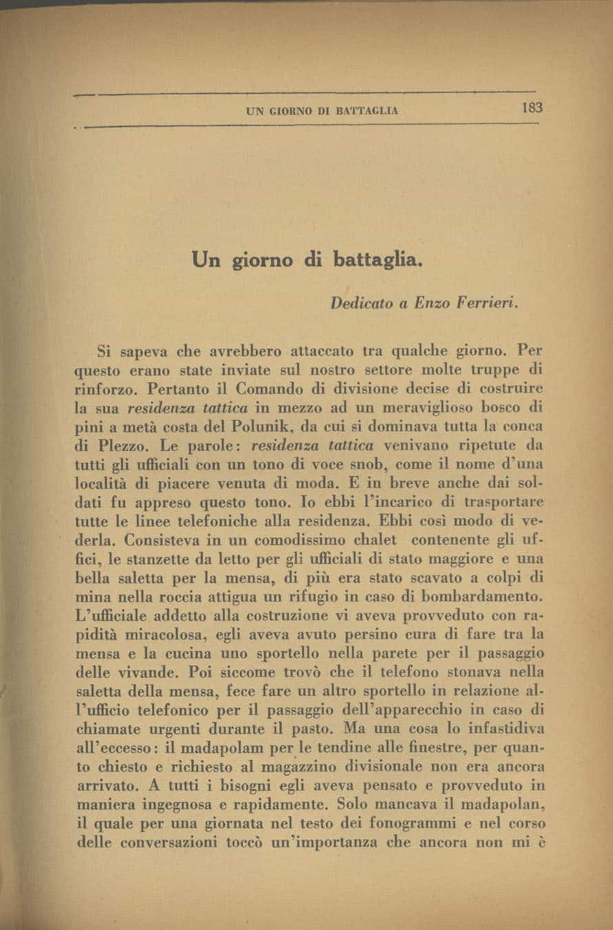Strumenti per la ricerca Il Convegno 1920-1940 Giovanni Comisso, Un giorno … Giovanni Comisso, Un giorno di battaglia Condividi su Giovanni Comisso, Un giorno di battaglia, «Il Convegno», VII (1926), n. 4, pp. 183-192