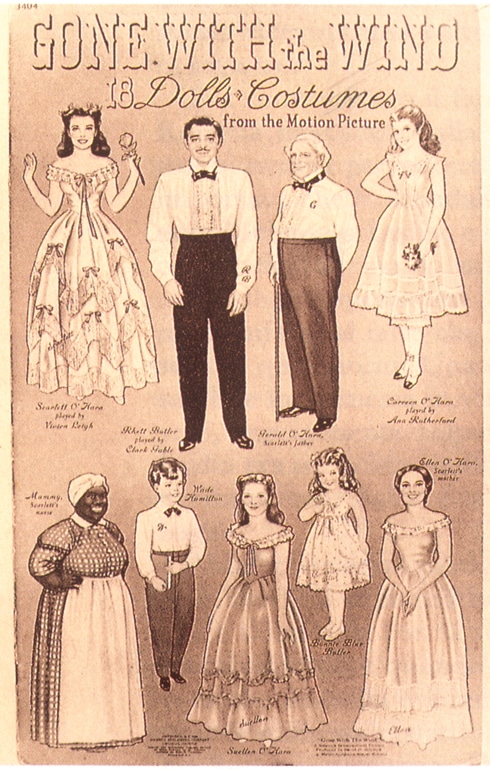 Si trovano in vendita stoffe da parati, fermalibri di ferro dipinti e altri oggetti che raffigurano Rhett e Scarlett, ma anche album da colorare, figurine dei personaggi e i costumi del film da ritagliare, il profumo «Rossella» in una confezione-statuetta.