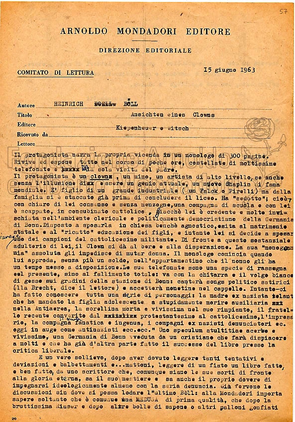 Heinrich Boll, Ansichten eines Clown [Opinioni di un clown]