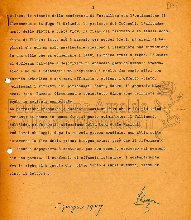 Il giudizio è tratto dal faldone che contiene documenti relativi ai Rapporti con la Casa Editrice, entro il ricchissimo Fondo intestato alla studiosa, che comprende carteggi, contratti, testi di lezioni e conferenze, fotografie, lettere private ecc.