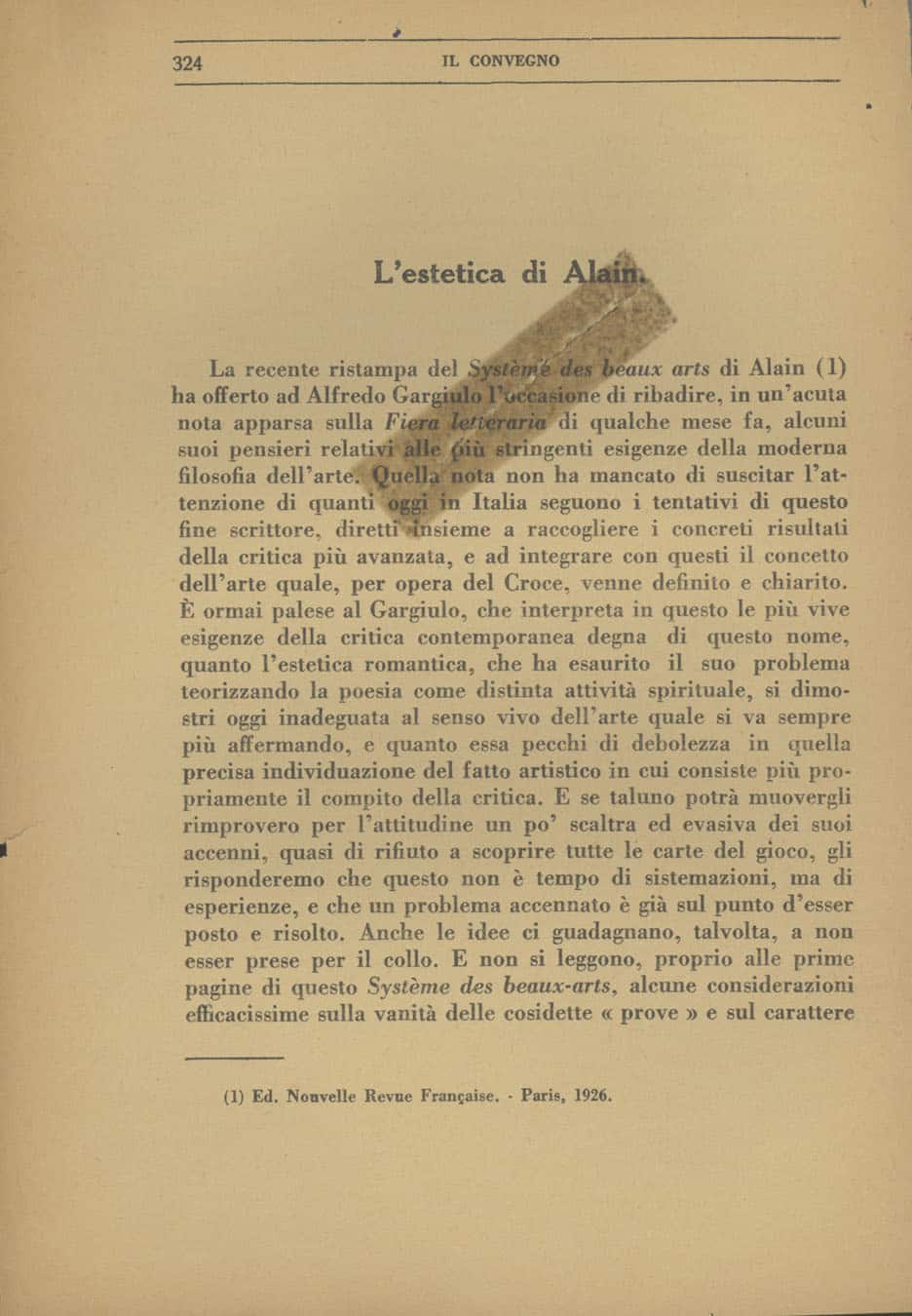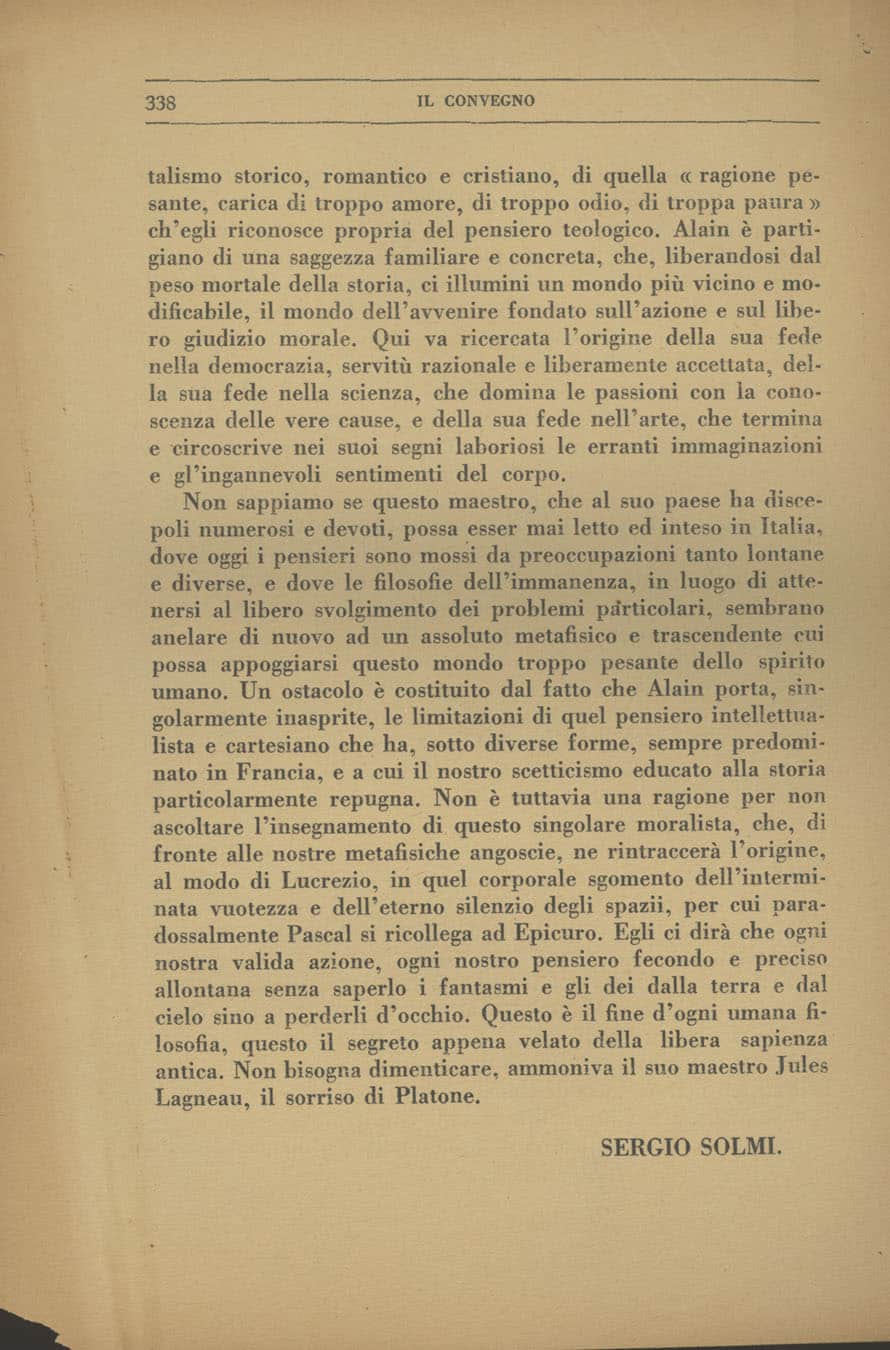 Sergio Solmi, L’estetica di Alain, «Il Convegno», VIII (1927), n. 6, pp. 324-338