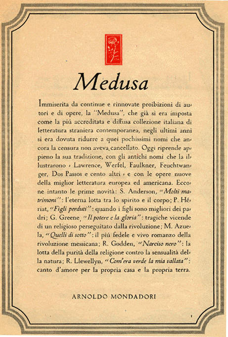 L’ultima pagina riprodotta è un esempio di quelle che comparvero negli anni successivi (1947) su questa rivista. La pagina “celebra il 200° volume della Medusa”: La fattoria degli animali di George Orwell